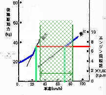 上記のように 仮に、このエンジンが7000rpmがベストの回転数だとすれば おいしい速度域は左図から見て25〜70Km/hに確定します。 これは、セッティングの考え方とはちょっと逆なんですが 実は「ベストの回転域が確定している」場合は、 既に速度域は決定してしまっているのです。 とすると、ベストセッティングの前後で 「加速優先」とか「最高速優先」は理論的には存在しない ということになります。 どんなコースであっても、他のパーツを変更しない限り ウェイトローラーの重量は変わりません。 |