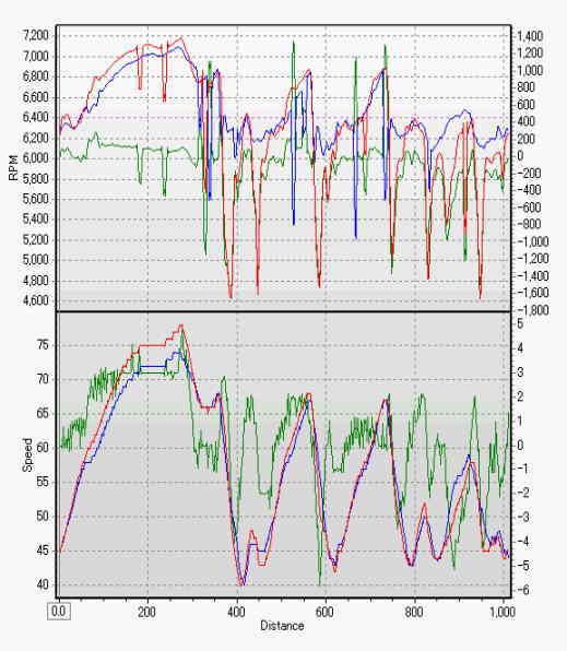 これを見ると、ドライビングスタイルとタイムの違いが如実に出ています。
